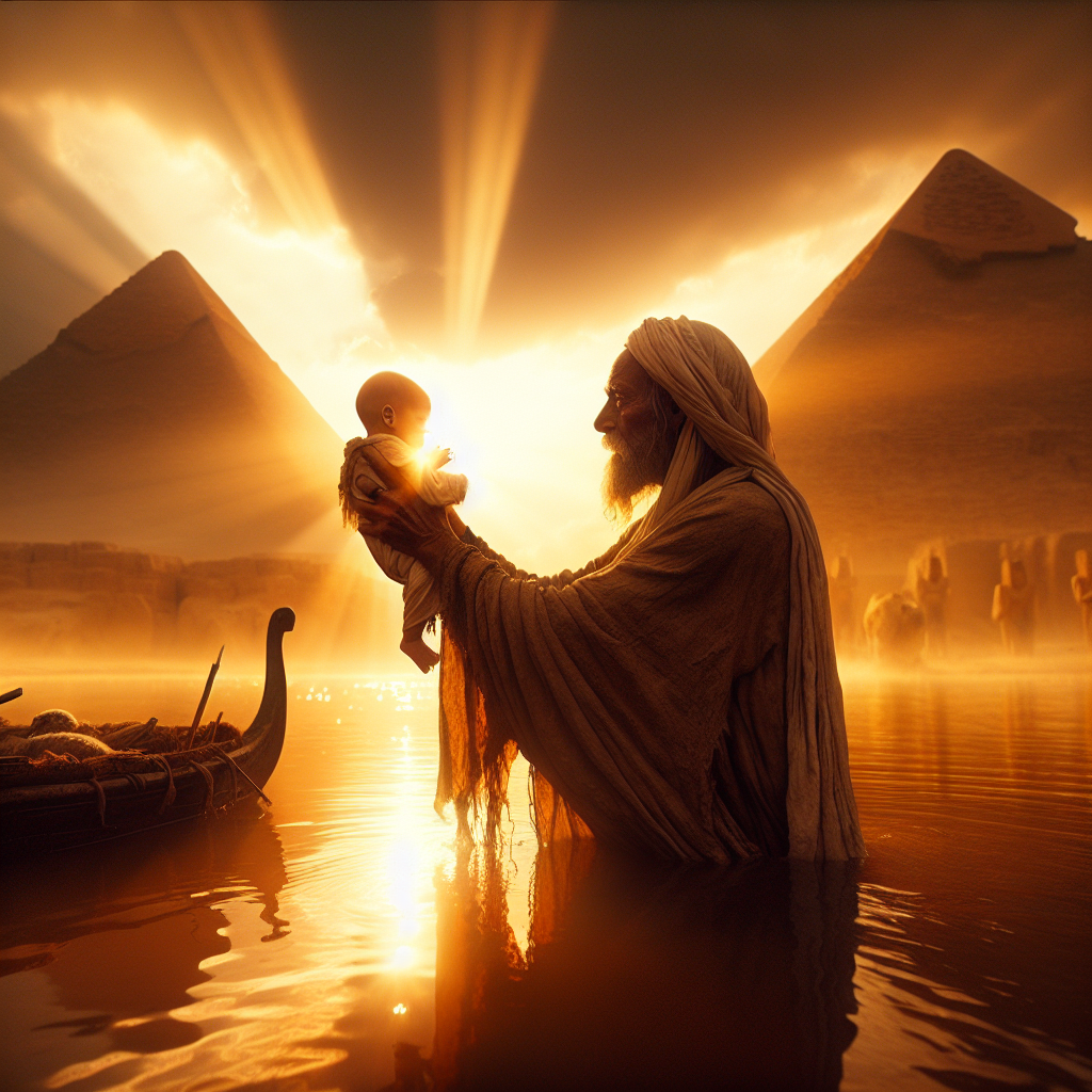 “Moses.” She breathes life into letters, chiseling identity into destiny. It means “drawn from the water.” A name birthed from the depths, both in peril and promise. Each syllable echoes through time, resonating with divine intention. The Nile cradles its own miracle today, gifting the world a leader who shall rise like the river floods.