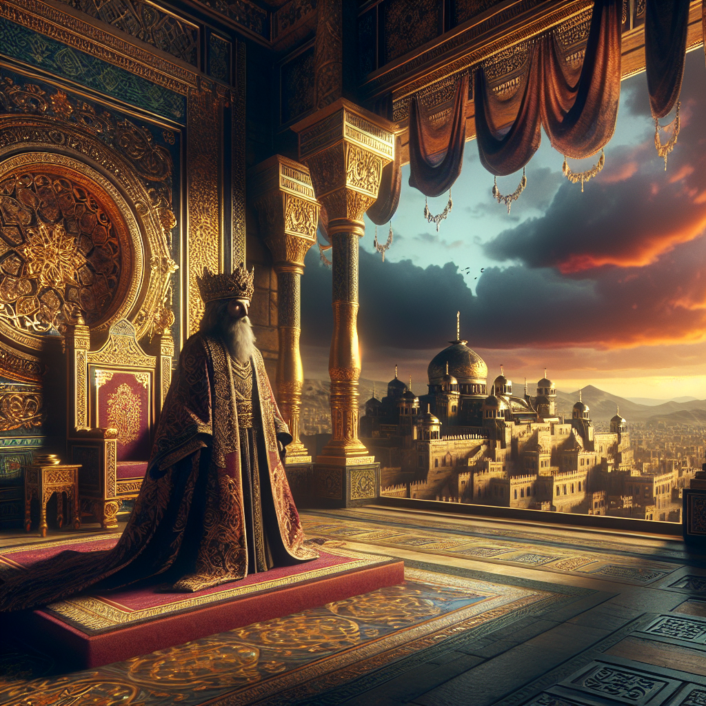 In the silent shadows of the temple, Solomon stood—a king crowned in wisdom, yet tethered to choices that whispered treason against the divine. In the echo of sacred halls, his heart beat heavy with the weight of decisions.