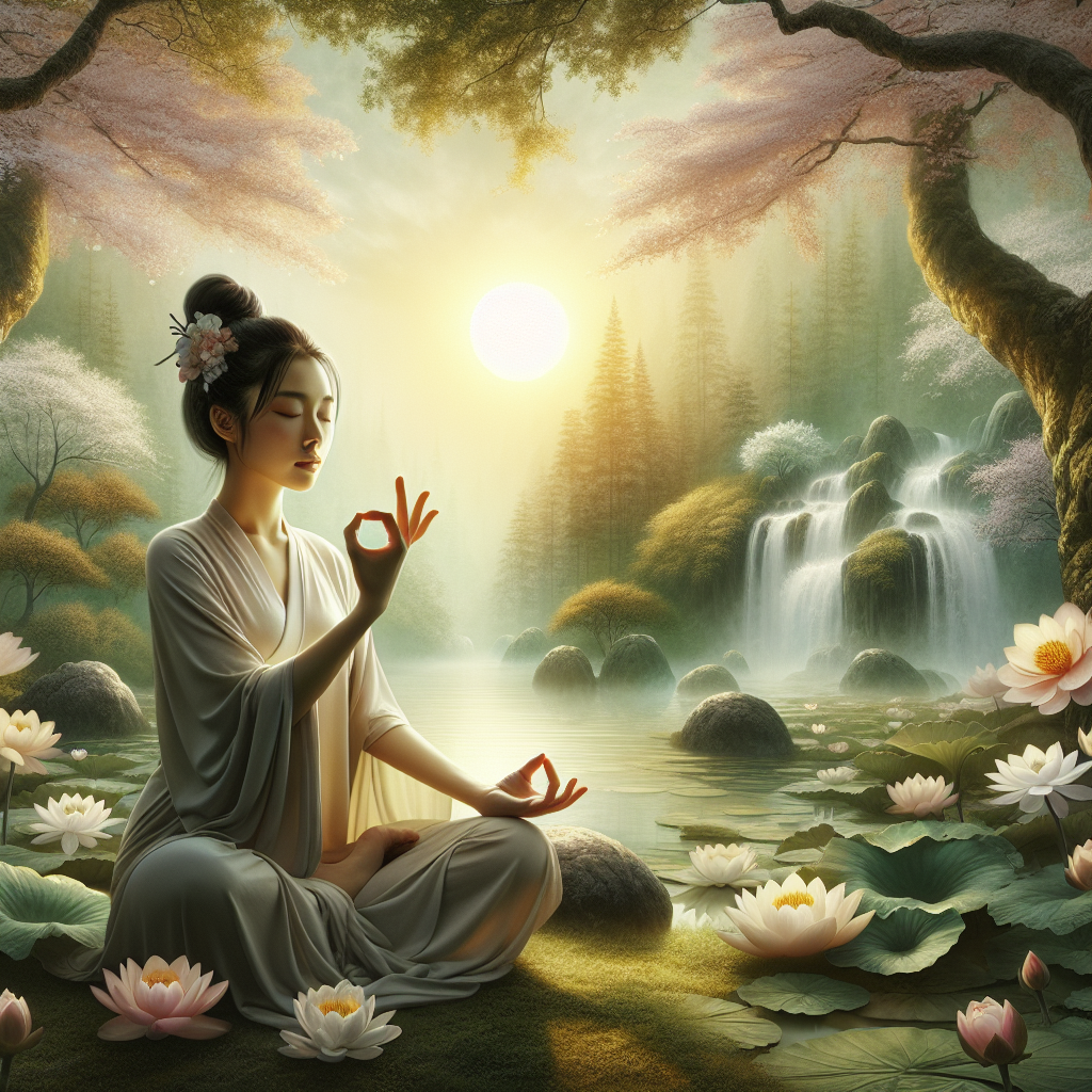 A: Meditation aids spiritual growth by promoting mindfulness, reducing stress, and enhancing self-awareness. It helps practitioners connect with their inner selves, facilitating a deeper understanding and acceptance of life.